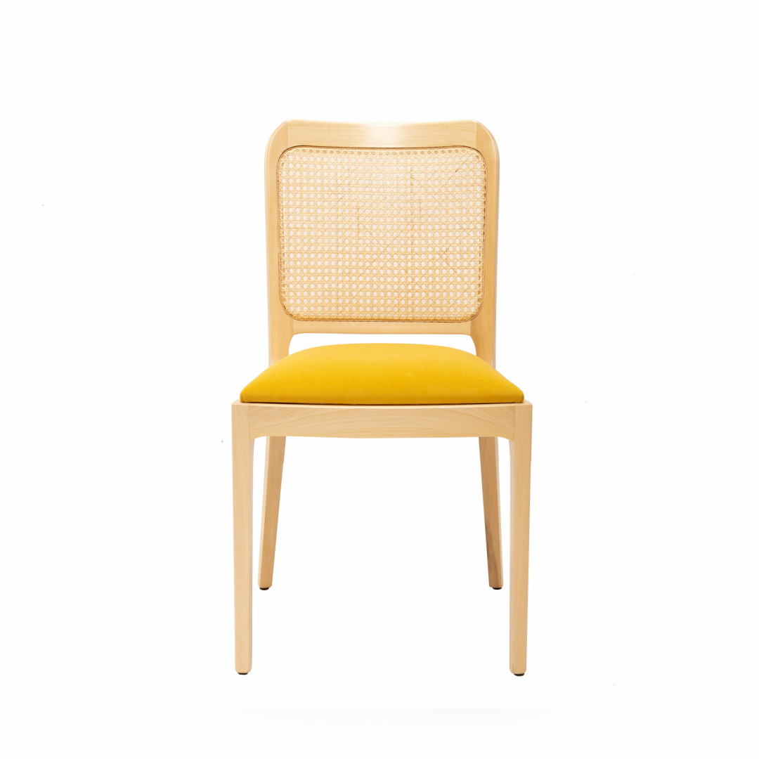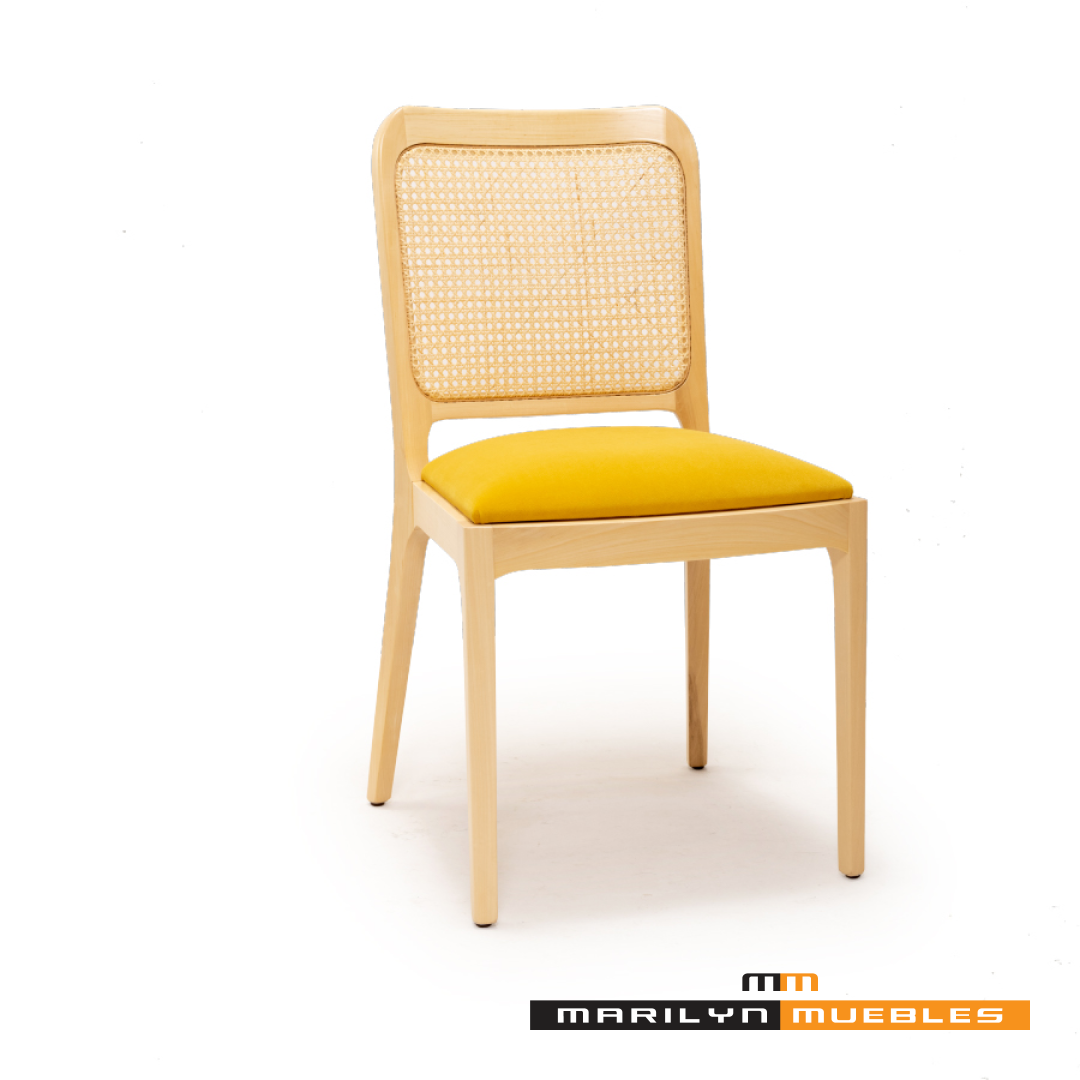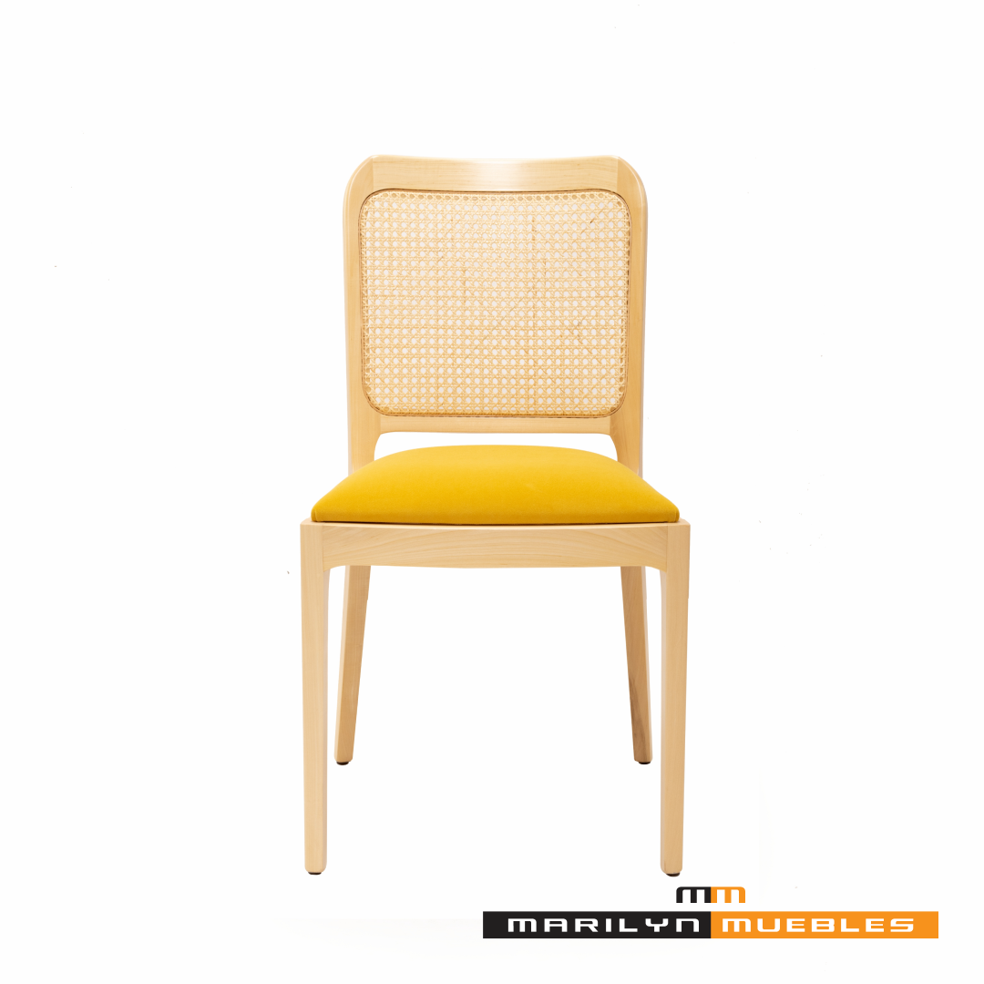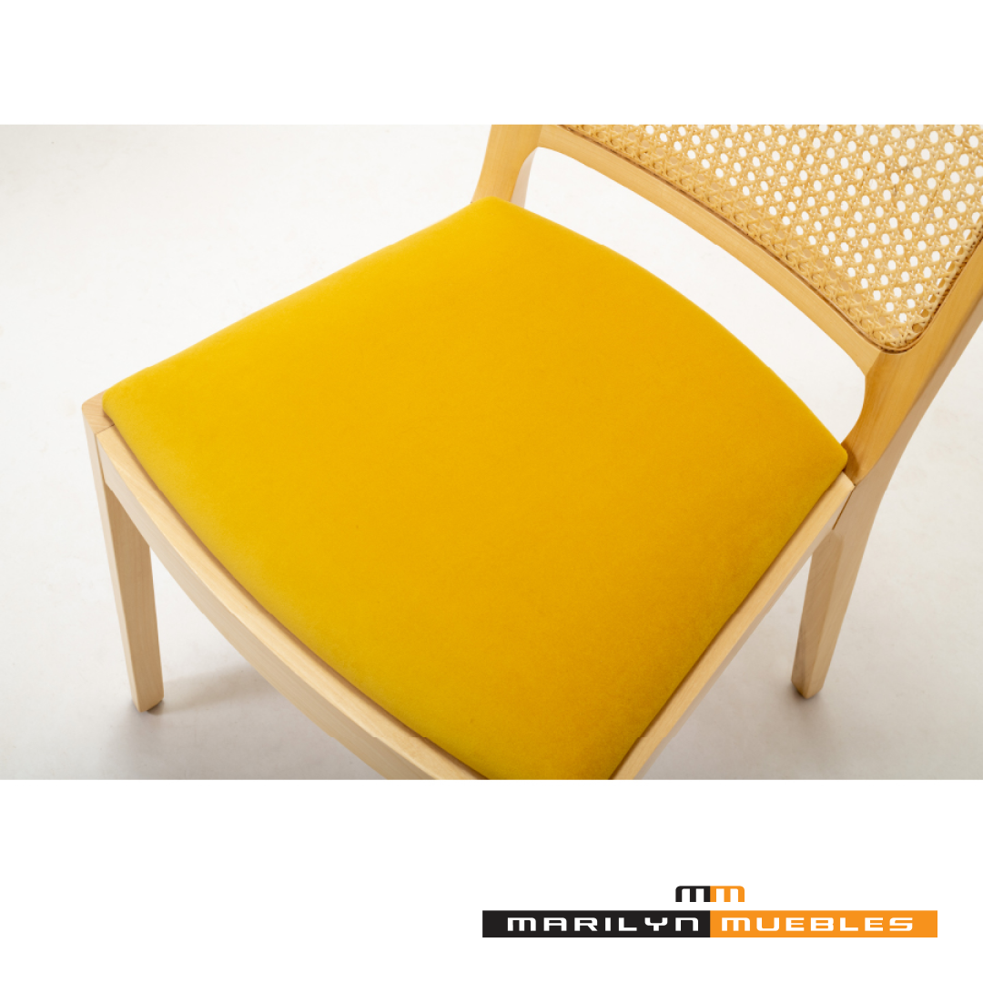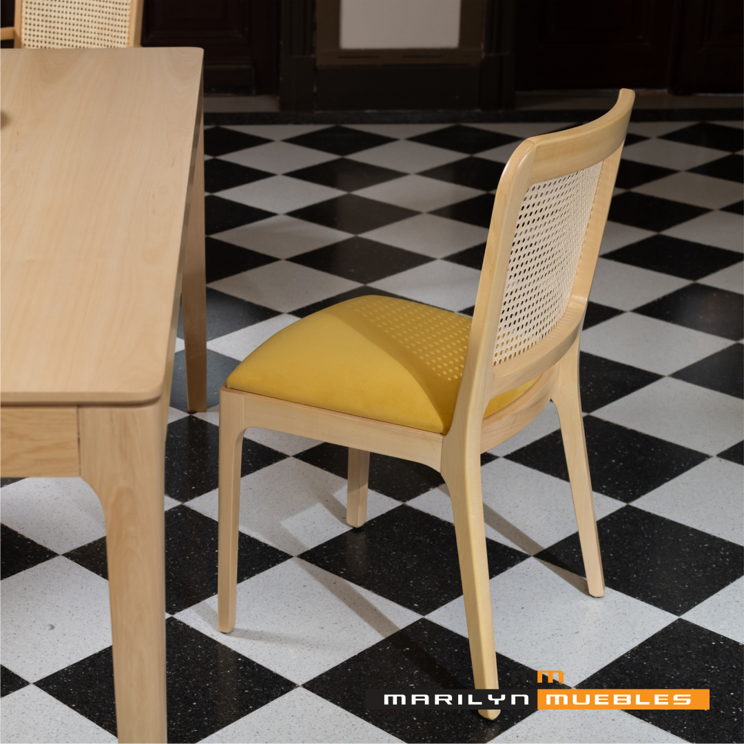 Silla de madera de Guatambu, lustre a elección, tapizado telas chenille o pana antimanchas, tacos de silicona. 2 años de garantía estructural.