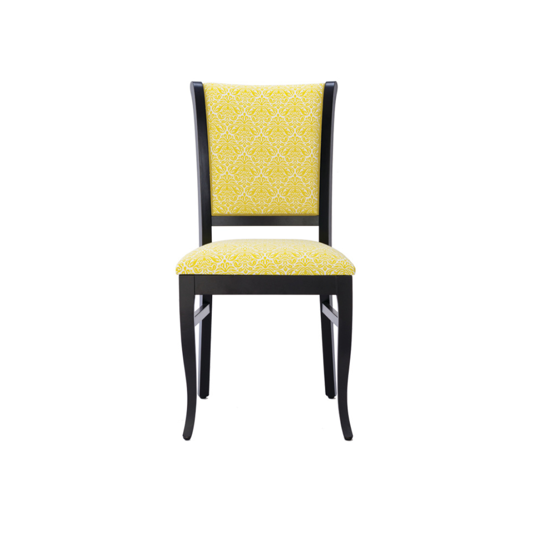 Silla de madera de Guatambu, lustre a elección, tapizado telas chenille o pana antimanchas, tacos de silicona. 2 Años de garantía estructural.